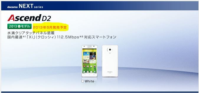 Huawei(ファーウェイ)のスマートフォンAscend D2 HW-03Eの発売日記載が5月に変更されました。