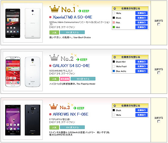 画像出典:docomoオンラインショップ「週間売れ筋ランキング」