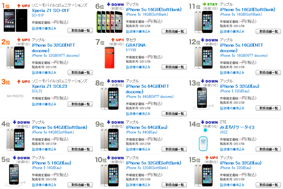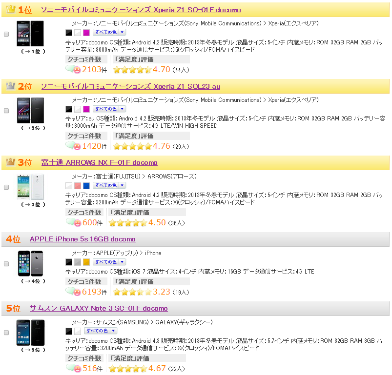 1位:Xperia Z1 SO-01Fと、かなりの格差が表れているようです。