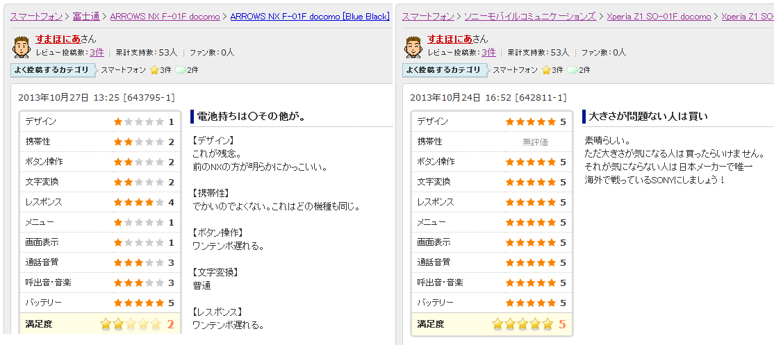 GALAXY・XPERIA・iPhoneといった、「熱心なファン&アンチの両方が存在する機種」では恒例になりつつある現象なのですが、総レビュー数自体が少ない段階では平均点への影響が大きくなります。