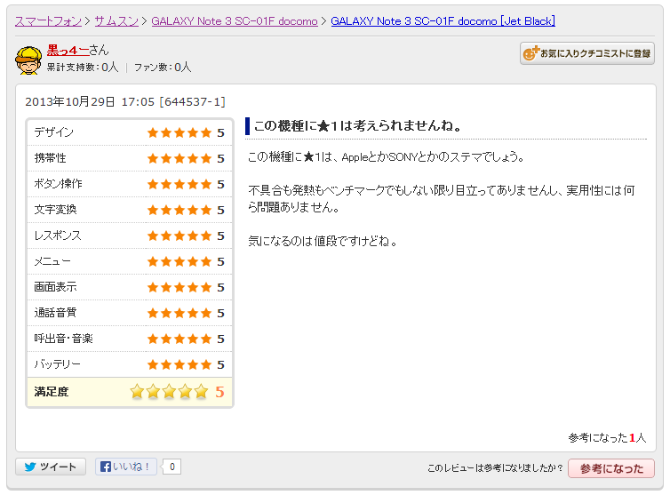 もちろん良いレビューも存在するのですが、現時点での平均点ランキング紹介にはあまり価値がなさそうです。今後投稿されるレビューの質が上がって「参考になる数値が得られる」と判断できた時点で、またご紹介したいと思います。