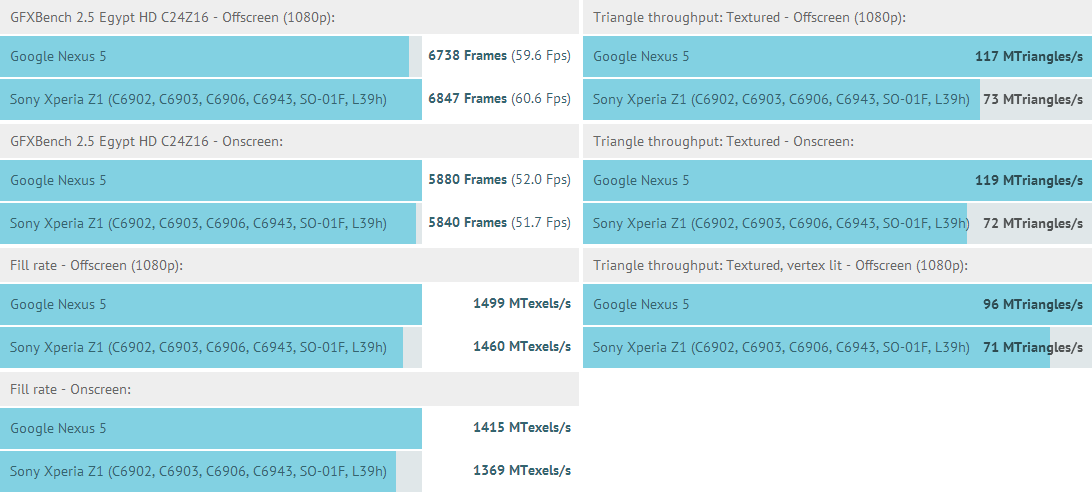 画像出典:GFX Bench「NEXUS5、Xperia Z1」