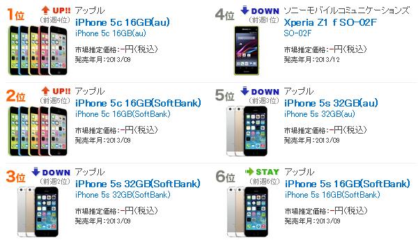 1. iPhone5cが大躍進のBCN 携帯電話売れ筋ランキング