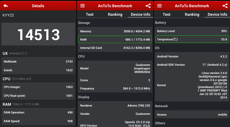 Androidスマートフォン用のベンチマークアプリ「AnTuTuベンチマーク」にて、au URBANO L02の処理能力を測定しました。