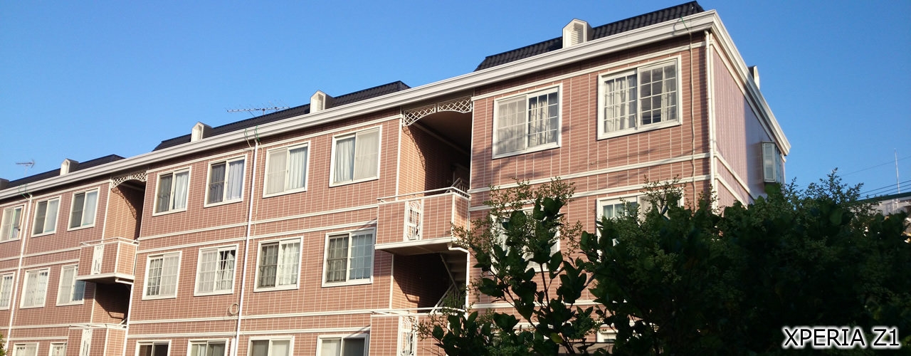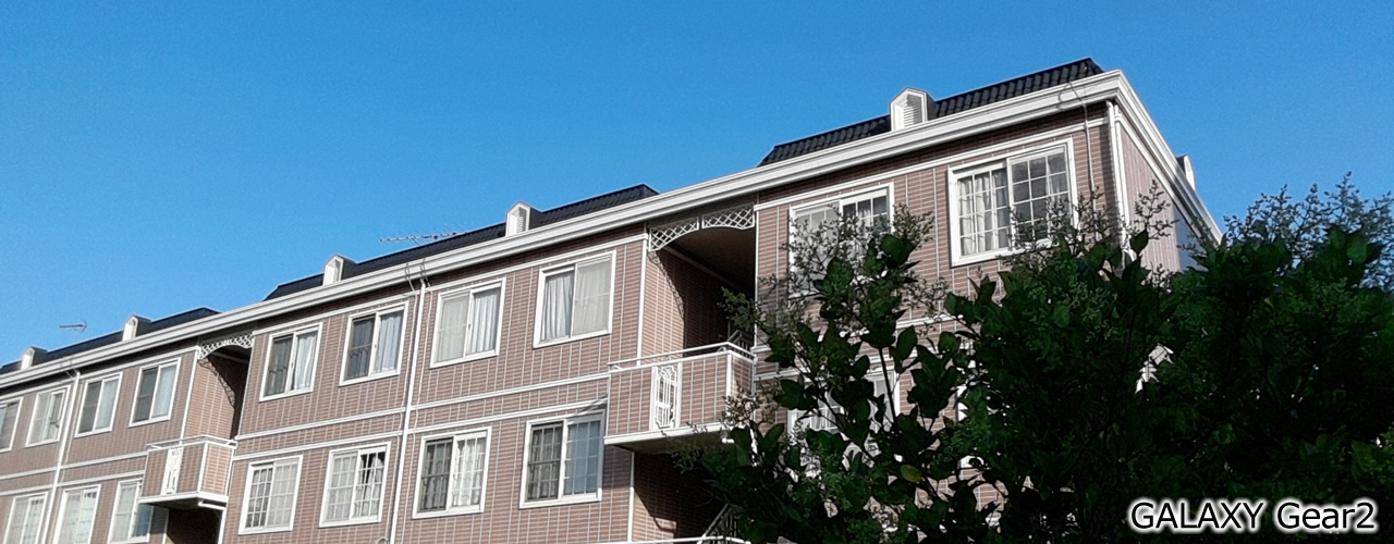 HDRが試される逆光の強いシーンでの撮影。Gear2は殆ど黒くつぶれてしまっていますが、XPERIA Z1では随分マシに見えます。それ以上にGALAXY S5は綺麗に撮影できており、建物の側面の色までしっかりわかります。