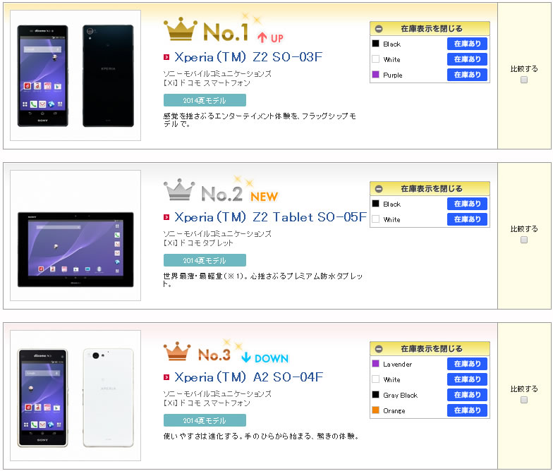 2. XPERIAがトップ3独占!「ドコモオンラインショップランキング」