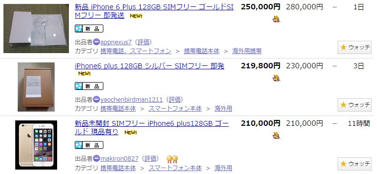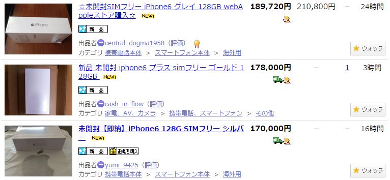 AppleストアでのiPhone6 128GB販売価格は89800円ですが、オークションに出品されている物は最高で180000円近く。