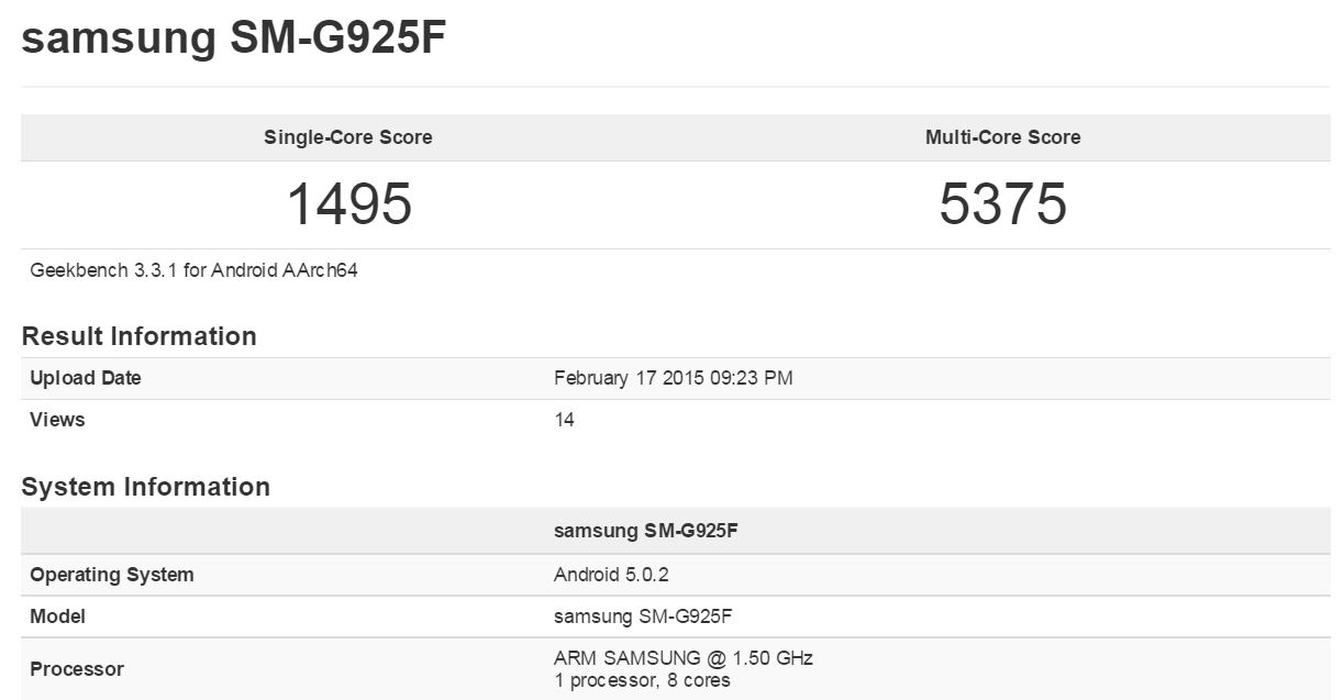 ギャラクシーS6/Edgeと見られる「SM-G925F」のベンチマーク結果が登場しました。