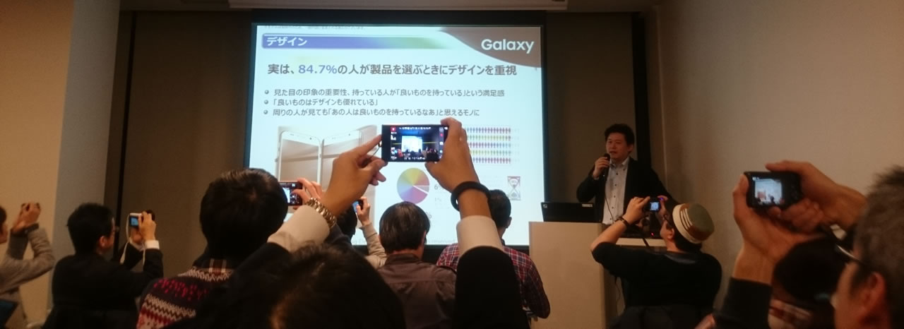 サムスン電子ジャパン 商品企画担当者による、GALAXY S6 / S6 Edge紹介の様子。