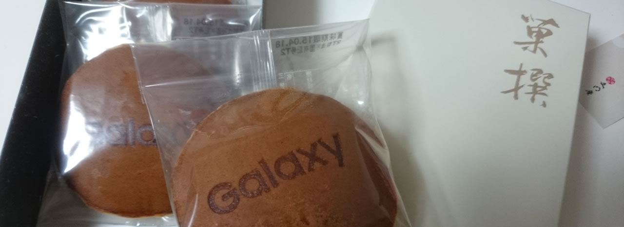 お土産に頂いたGalaxy新ロゴが描かれたドラ焼き。主なスペックは下記の通りです。