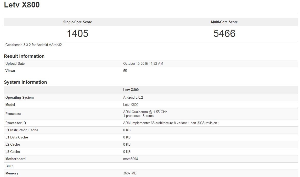 LeTV X800(LeTV One Pro)のベンチマーク