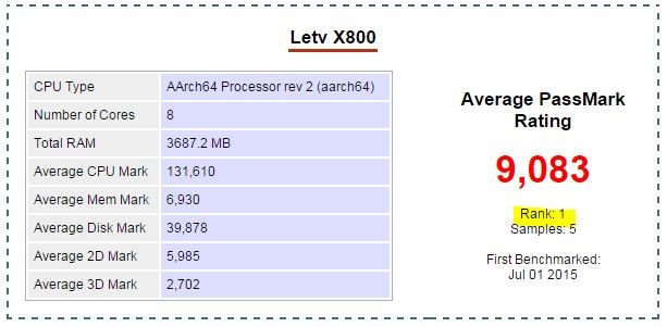 Xperia Z5等、他のSnapdragon810搭載スマートフォンに比べて全体的に良好な結果であり、PassMarkではAndroid端末歴代一位の結果となっています。