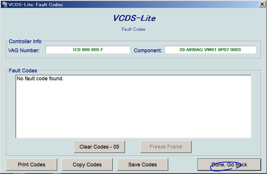 「No fault code found」。エラーが消えました。