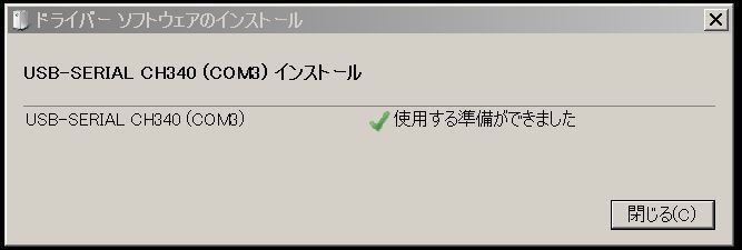 正常に認識されました。デバイスマネージャ上では「USB-SERIAL CH340(COM3)」と表示されます。