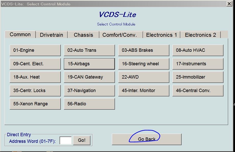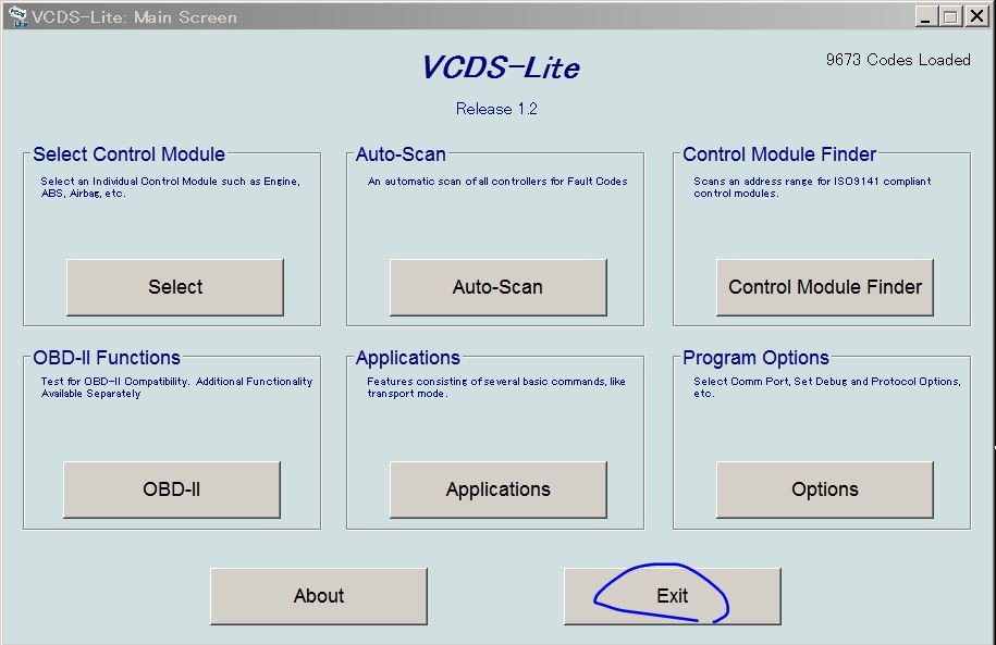 制御ソフトはVCDS-Lite(バージョン15.7.4)を利用しました。