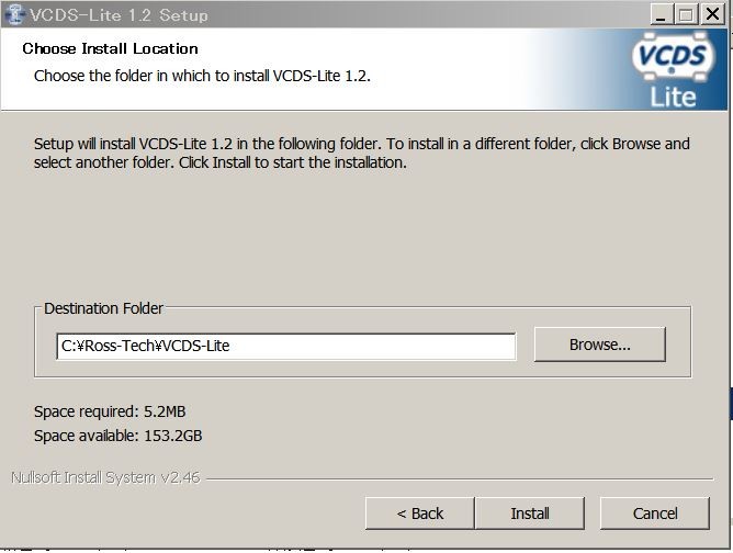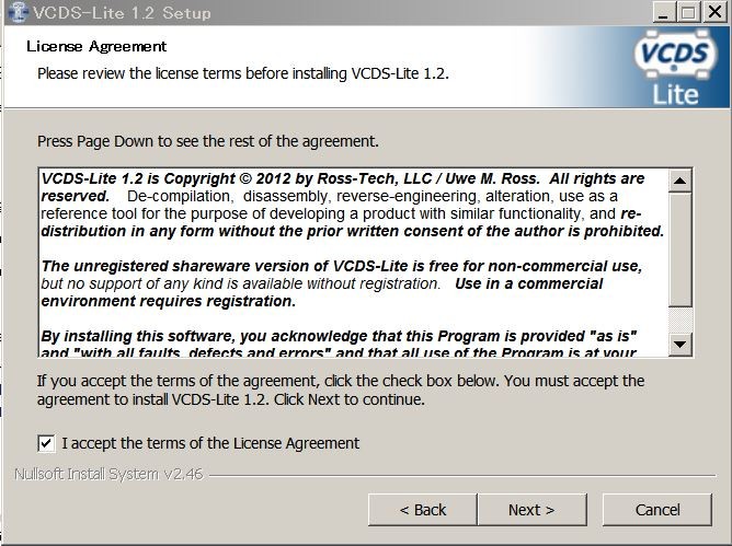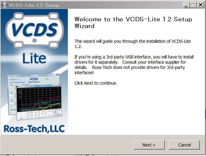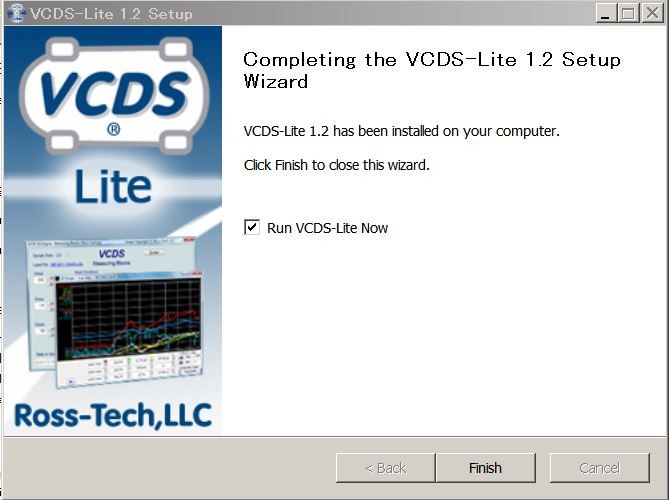 次に制御用ソフト「VCDS-Lite」のインストーラー(VCDS-Lite-1.2-Installer)を実行します。