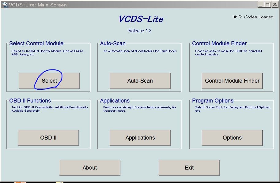 「Select Control Module」のselectボタンを押します。