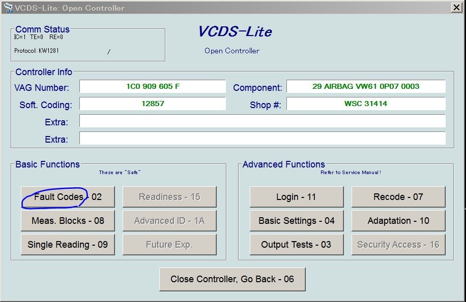 「Fault codes - 02」ボタンを押します。