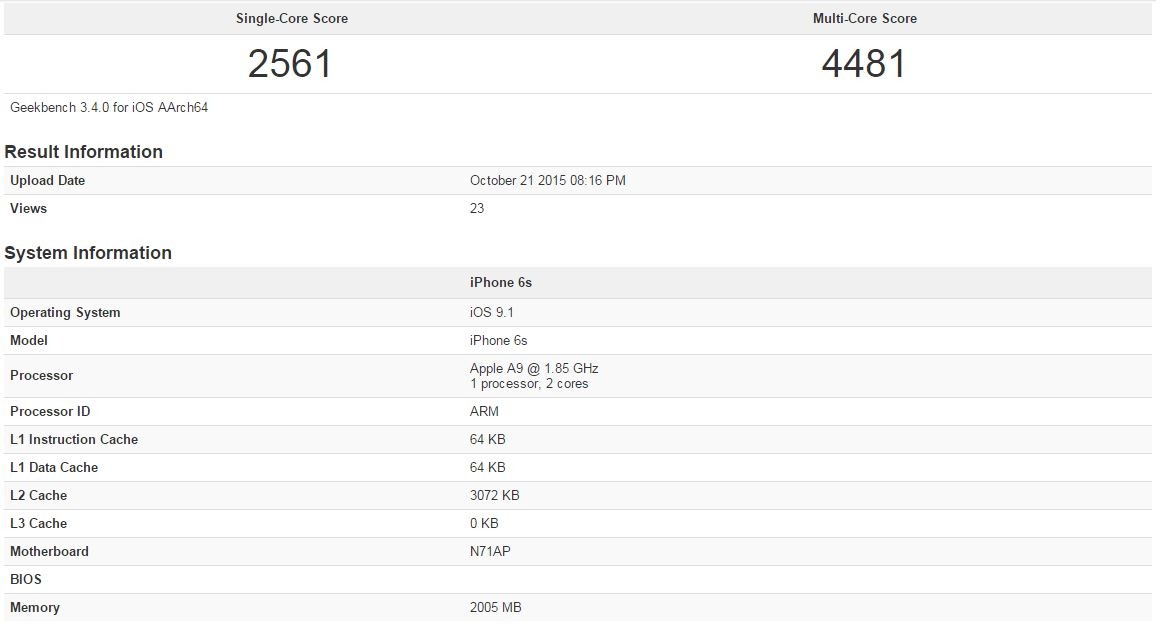 ちなみに、下記がiPhone6sのスコアです。