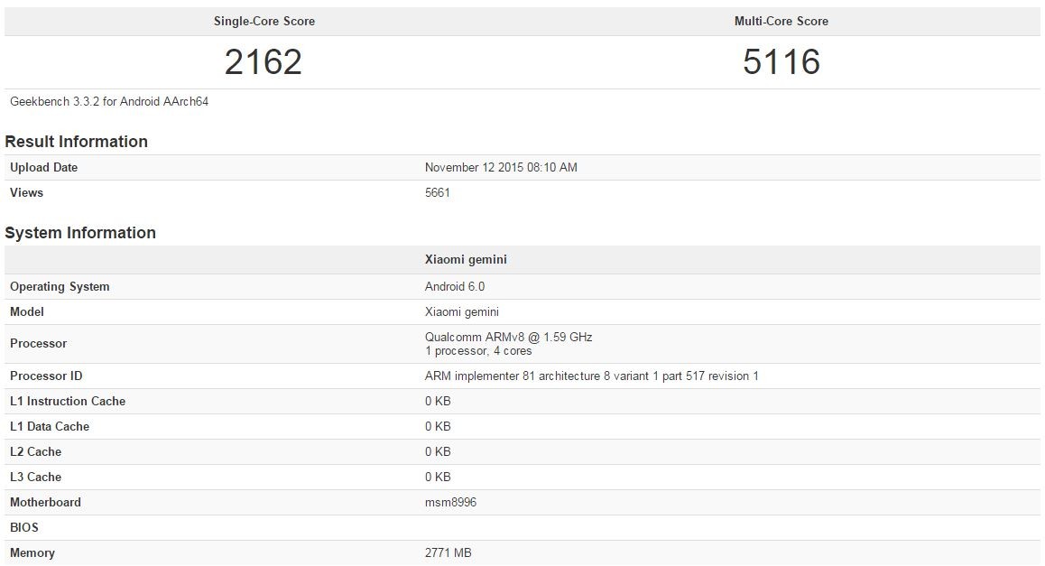 Geekbench3の結果は下記の通り。